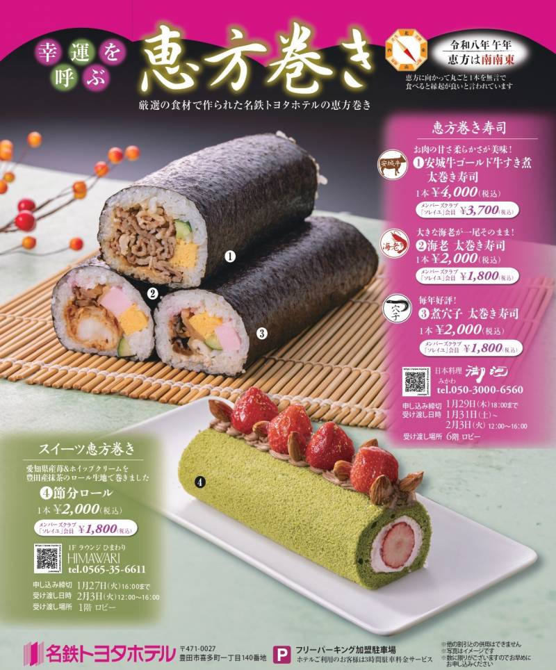 毎年好評の名鉄トヨタホテル特製恵方巻きで幸せを呼び込みましょう!