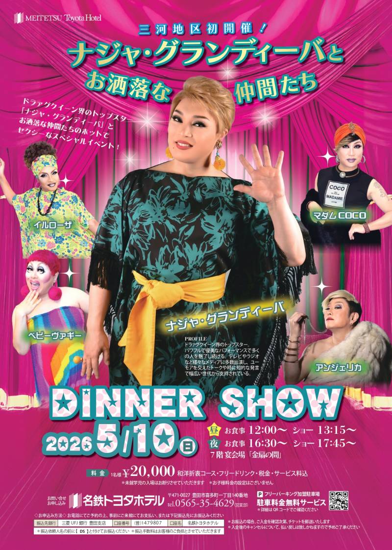 ドラァグクイーン界のトップスター「ナジャ・グランディーバ」とお洒落な仲間たちのホットでセクシーなスペシャルイベントをお楽しみください。